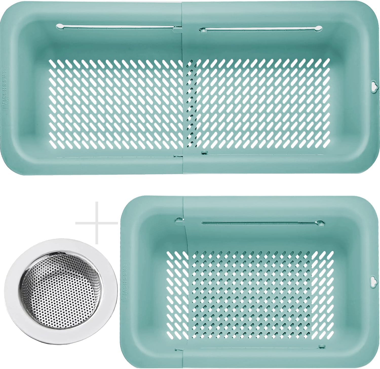 - Over the sink extendable strainer, SIZE: 13-19 in (smaller space-saving design) . Stainless steel drain strainer, SIZE: Outer diameter: 4.5”; inner filter: 3”; depth: 1” . They fit for most kitchen sinks and drains.